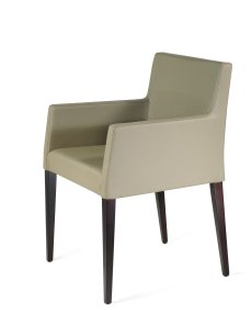 Modern chair with armrest made in solid beech or ash wood, available in a choice of finishes. Playwood frame, padded with flexible PU foam and upholstered in fabric, eco-leather or leather. Armchair suitable for home, contract, naval, lounge, reception, hotel, b&b, nursing home, cafès, waiting room, restaurant.