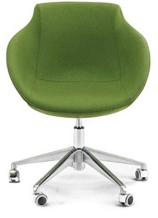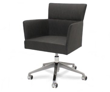 Modern armchair with metal swivel base and gas lift piston, available chromed or black colour. One-piece shell with internal steel frame fully padded with cold-cured PU foam upholstered in fabric, leather or eco-leather. Ideal for restaurant, bar, b&b, hotel, reception, cafès or waiting room. Fireproof internal padding according to the following regulations: Class 1IM, French class M4, California Bulletin 117:2013.