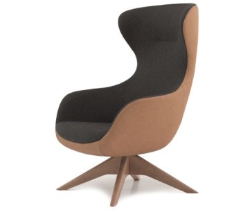 Modern lounge armchair with ash wood swivel base, available in a choice of finishes. One-piece shell with internal steel frame fully padded with cold-cured PU foam upholstered in fabric, leather or eco-leather.Suitable for home, contract, naval use. Ideal for restaurant, bar, b&b, hotel, reception, cafès, meeting room or waiting room. Fireproof internal padding according to the following regulations: Class 1IM, French class M4, California Bulletin 117:2013.