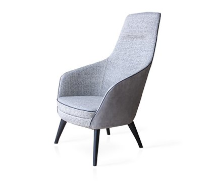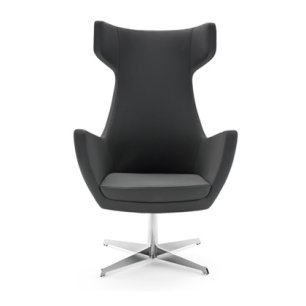 Modern lounge armchair with metal swivel base, available chromed or black colour. One-piece shell with internal steel frame fully padded with cold-cured PU foam upholstered in fabric, leather or eco-leather.Suitable for home, contract, naval use. Ideal for restaurant, bar, b&b, hotel, reception, cafès, meeting room or waiting room. Fireproof internal padding according to the following regulations: Class 1IM, French class M4, California Bulletin 117:2013.