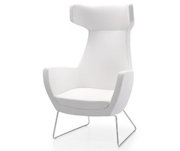 Modern lounge armchair with metal sled base, available chromed or black colour. One-piece shell with internal steel frame fully padded with cold-cured PU foam upholstered in fabric, leather or eco-leather.Suitable for home, contract, naval use. Ideal for restaurant, bar, b&b, hotel, reception, cafès, meeting room or waiting room. Fireproof internal padding according to the following regulations: Class 1IM, French class M4, California Bulletin 117:2013.