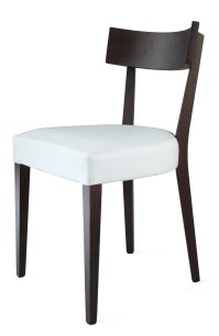 Modern chair made in solid beech or ash wood, available in a choice of finishes. Solid wood backrest, pressed wood seat padded with flexible PU foam, uphosltered in different coverings: fabric, eco-leather or leather. Chair suitable for home use. Minimum order quantities apply for this chair.