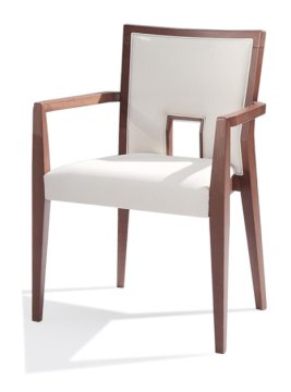 Stackable contemporary chair made in solid beech wood, available in a choice of finishes. Plywood backrest and pressed wood seat padded with flexible PU foam, upholstered in different coverings: fabric, eco-leather or leather. Model ideal for nursing home, naval or contract use (restaurant, hotel, bar, b&b, caffè, waiting room, lounge).