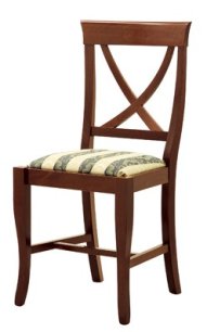 Country style chair made in solid beech wood, available in a choice of finishes. Seat made in different material: wooden seat for painting, straw seat or playwood padded with flexible PU foam and upholstered in fabric, eco-leather or leather. Model suitable for: home, contract, bar, restaurant, b&b, cafès, catering, hotel, reception, catering etc.